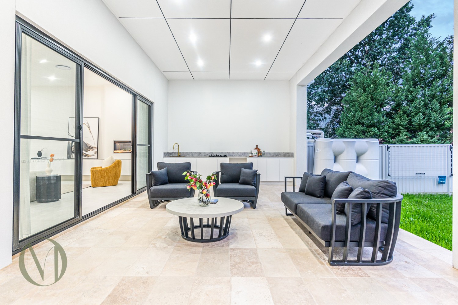 - Luxury Features Throughout – High ceilings, designer fixtures, and impeccable attention to detail, custom fitted laundry with loads of cabinetry, luxe powder room, video intercom, security alarm, fire place, storage space throughout, ducted air conditioning, floor to ceiling curtains/blinds, timber herringbone upstairs and tiles downstairs