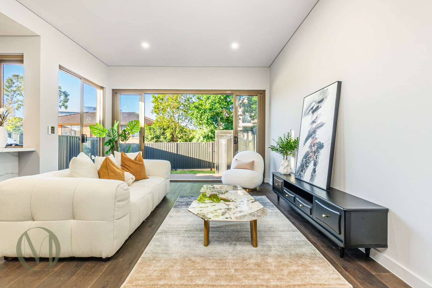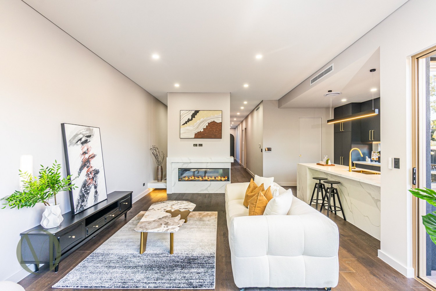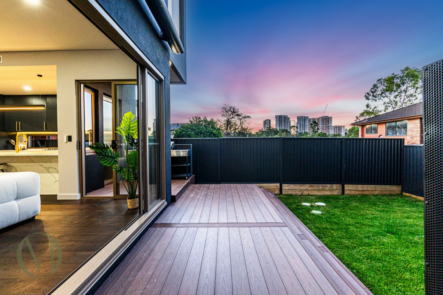 - Open-Plan Living, the expansive living and dining area flows seamlessly to a generous backyard featuring an electric fireplace and a built-in BBQ area.