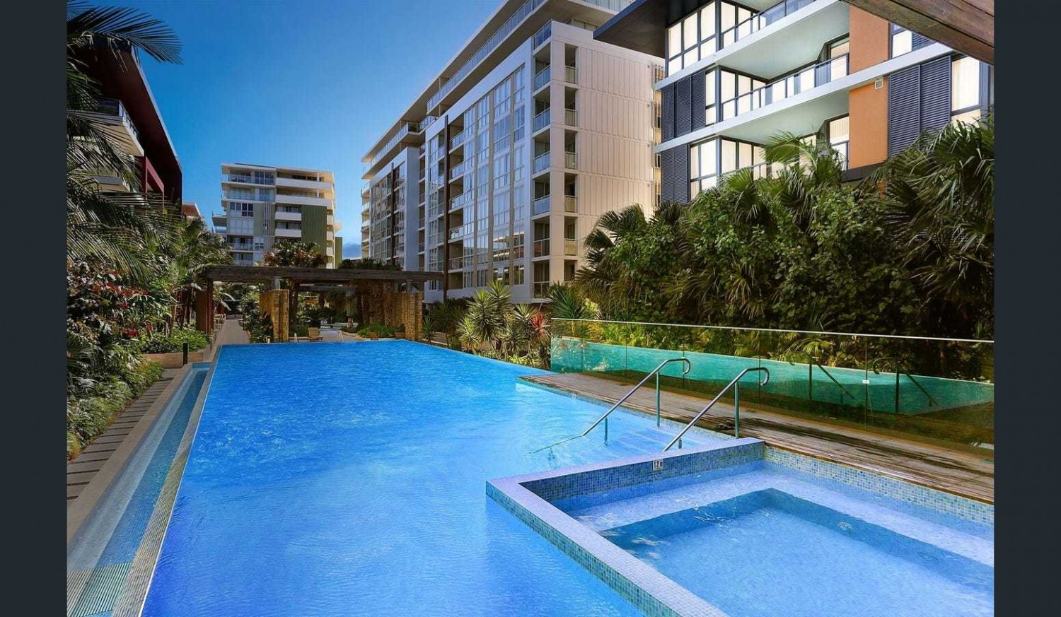 Discover the perfect blend of luxury and convenience in one of Ryde's most coveted buildings. This stylish one-bedroom apartment with a huge private courtyard that is located at the rear of the complex offers resort-style living at its finest. Immerse yourself in the lush, meticulously landscaped grounds, featuring BBQ areas and cabanas with breathtaking city skyline views.