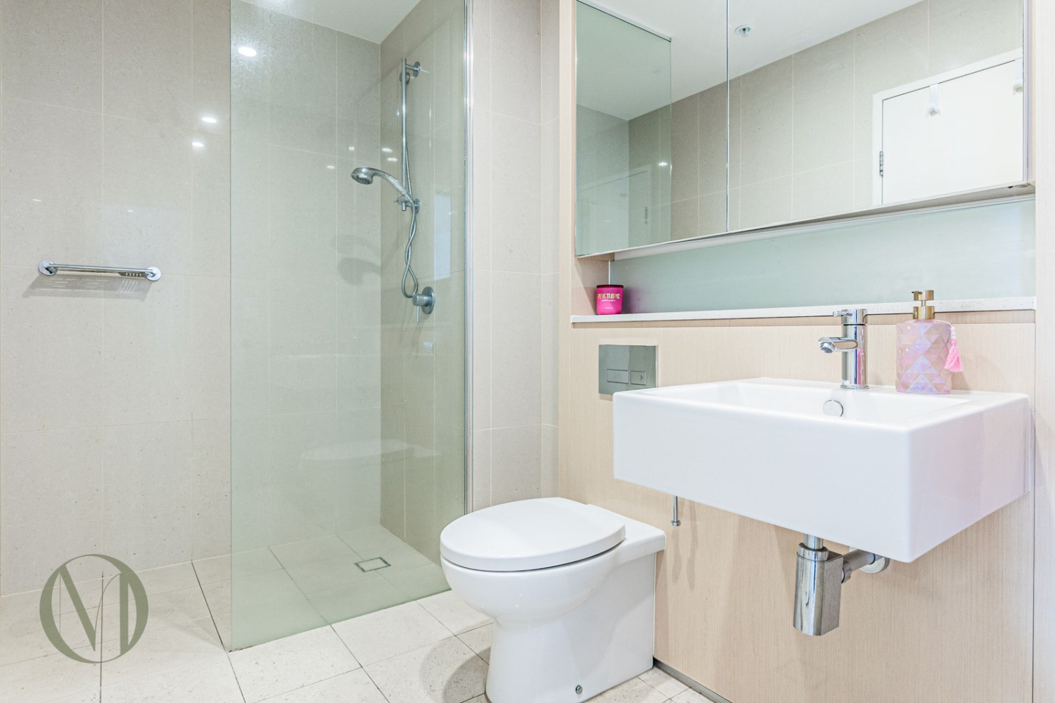 • Modern bathroom with contemporary finishes combined with internal laundry