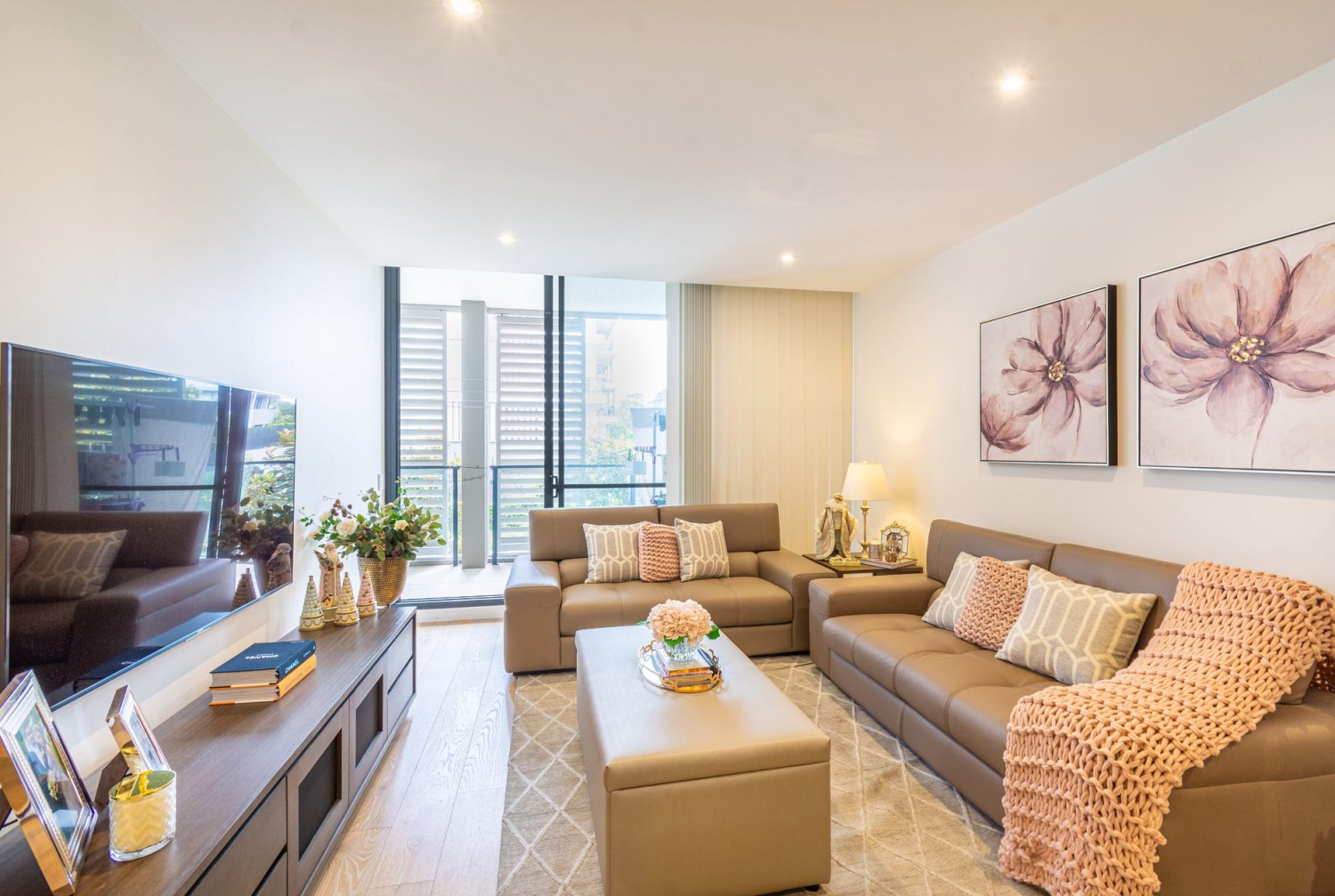 Bathed in natural light and boasting a sophisticated, open-plan layout, this generously sized apartment features seamless indoor-outdoor flow with full-height sliding doors opening to a north-facing balcony.