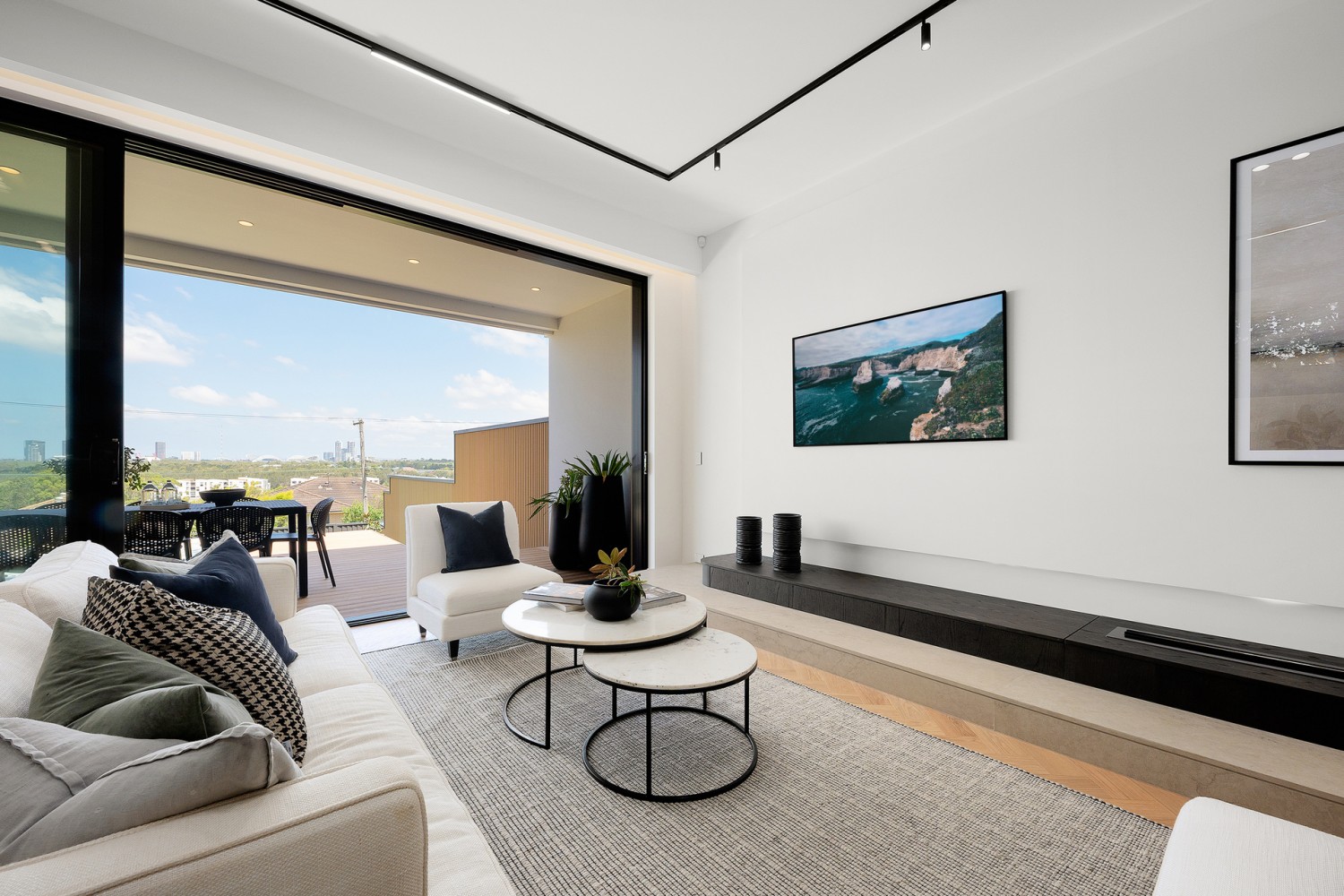 Set high above the landscape with breathtaking views of Sydney Olympic Park and the river, this brand-new tri-level home is a masterclass in modern design, luxury finishes, and smart technology. Offering an effortless indoor-outdoor lifestyle, it features a private balcony Jacuzzi for ultimate weekend relaxation.