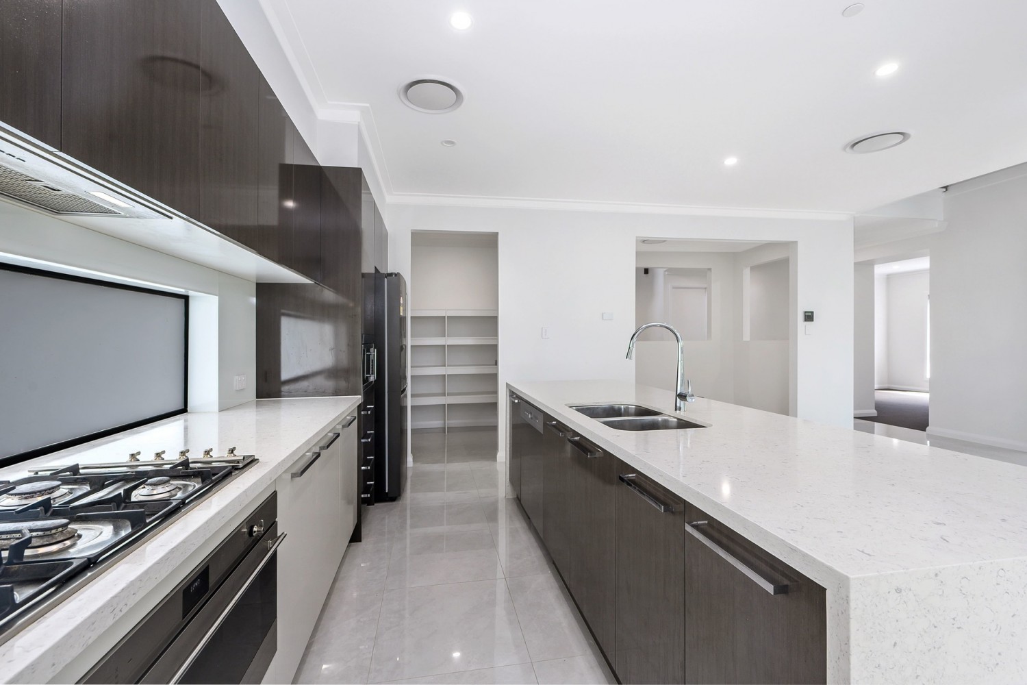 - Gourmet kitchen featuring Caesarstone benchtops, Smeg stainless steel appliances and an enormous walk-in pantry