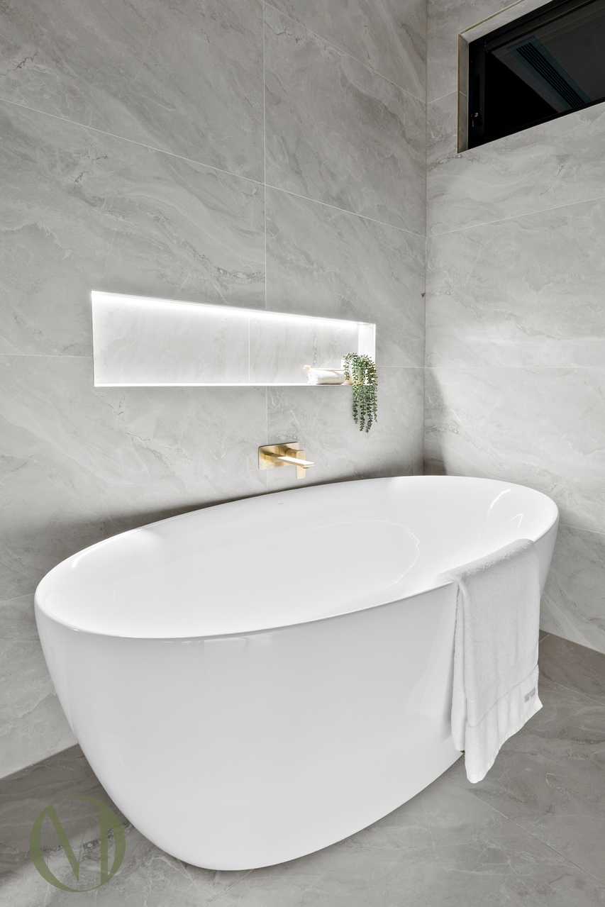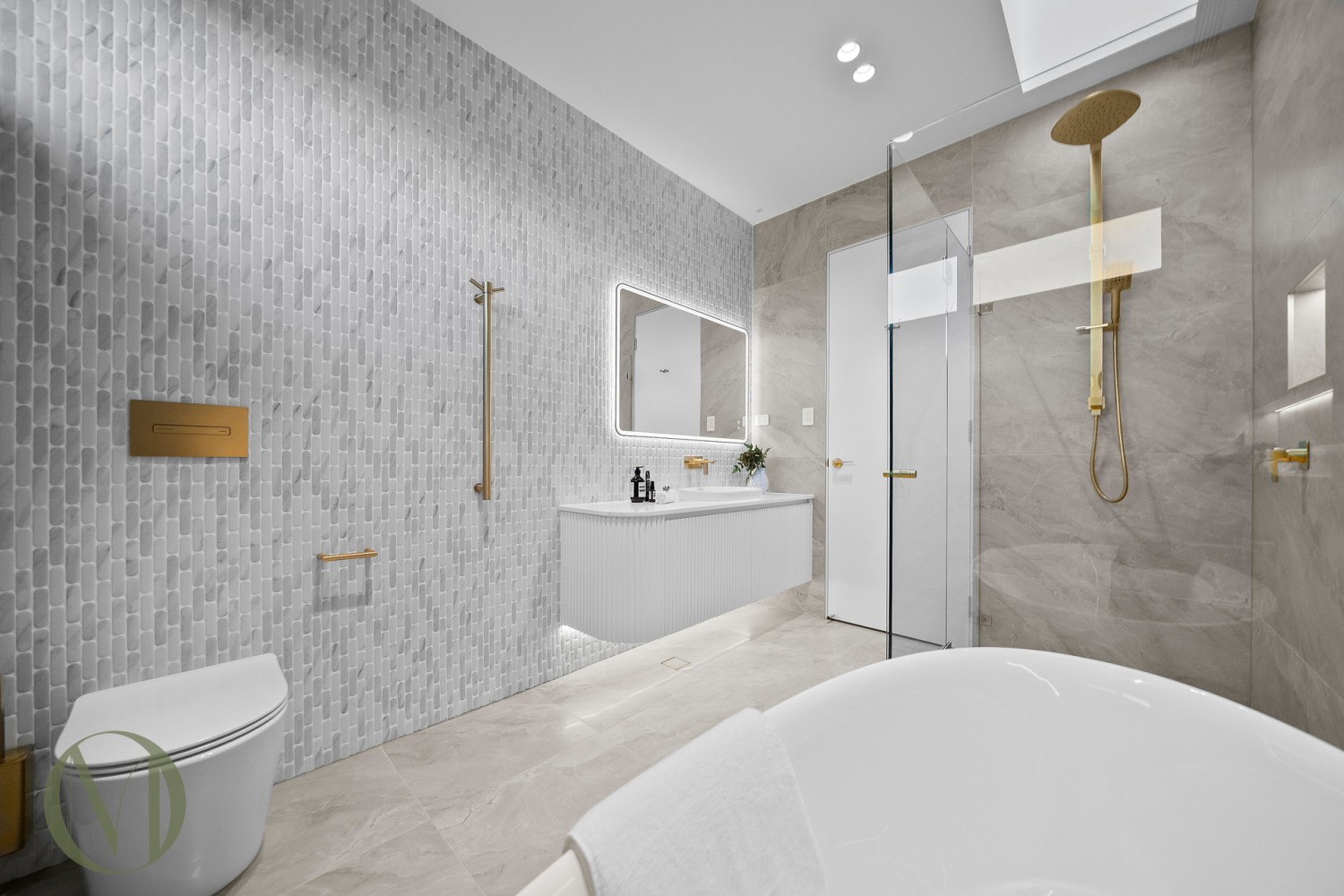 * High-End Bathroom & Plumbing Inclusions - Parisi inbuilt toilets, tap wear, baths and sinks with LED light up mirrors – high water efficiency & heated towel rails in all bathrooms
