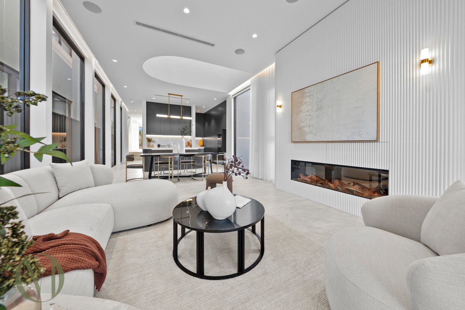 * Multiple Living Zones – Feature wall with custom built joinery has a 1600mm electric fireplace set behind dark glass ideal for both relaxed family living and sophisticated entertaining. An additional upstairs living area providing the perfect retreat for entertainment or quiet relaxation
