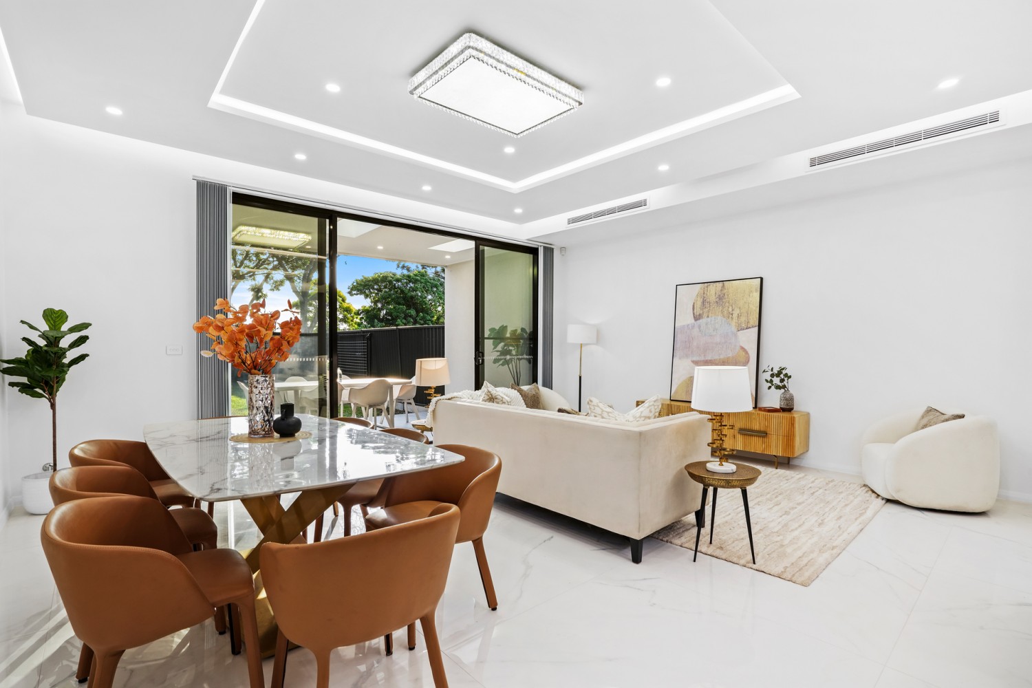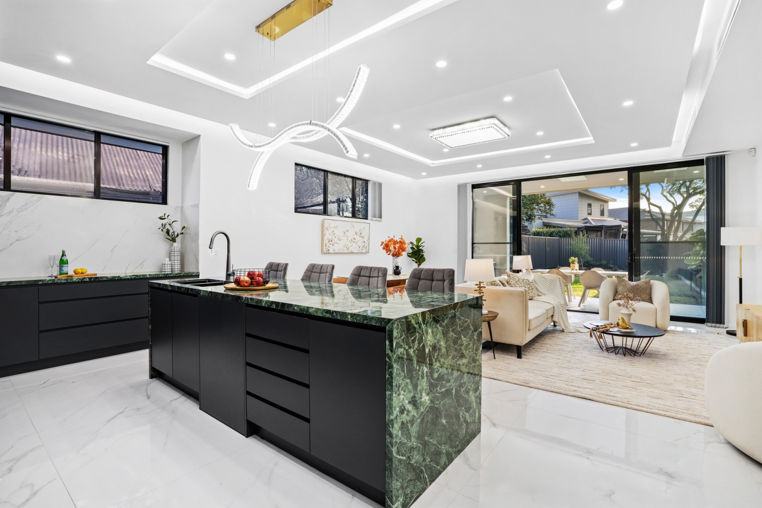 Sun-Drenched Living Spaces: The open-plan living and dining areas seamlessly extend to the alfresco entertaining zone overlooking the private backyard, ideal for hosting gatherings.