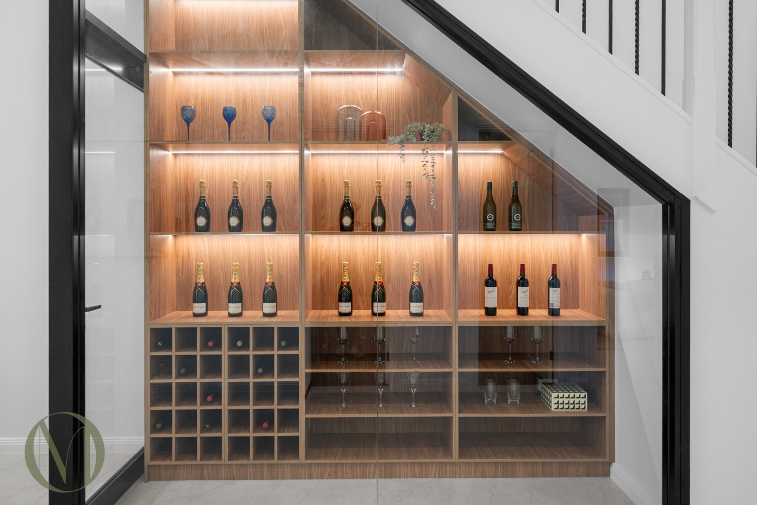 - Integrated wine cellar under the staircase and concealed LED lighting throughout