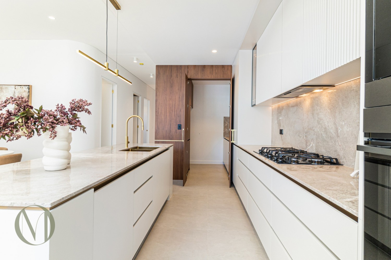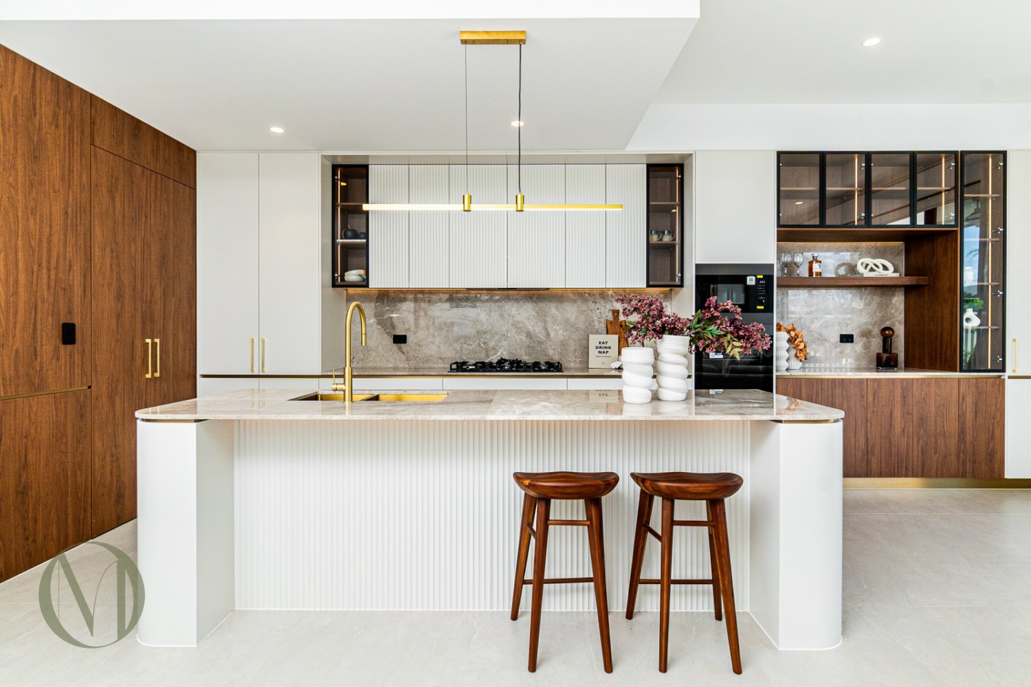 * Designer kitchen with stone island, 900mm gas cooktop, Bar & butler's pantry