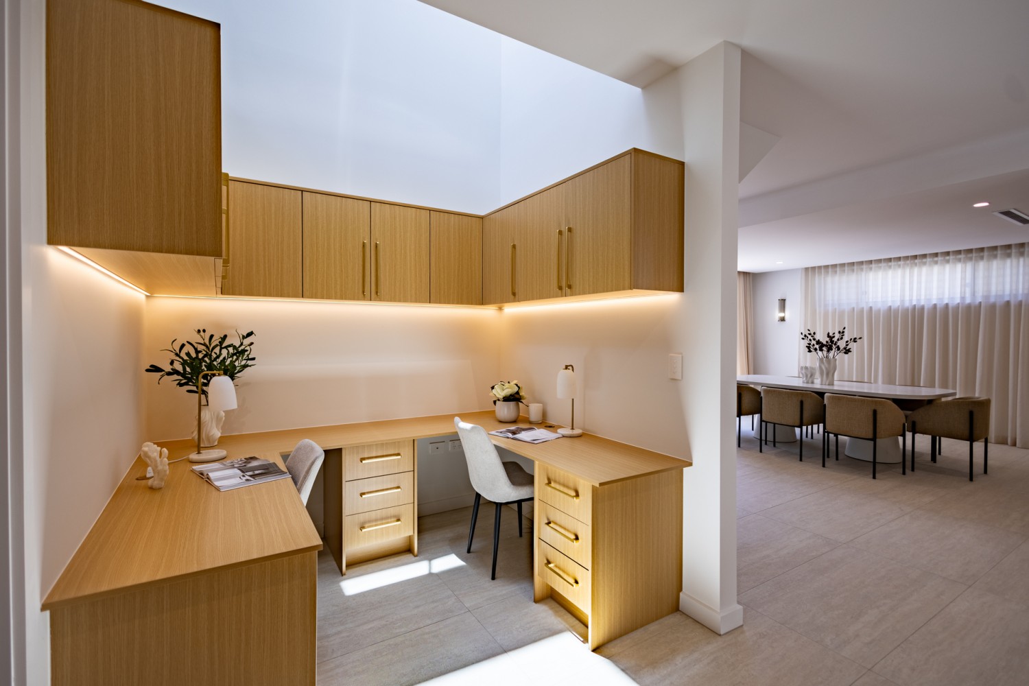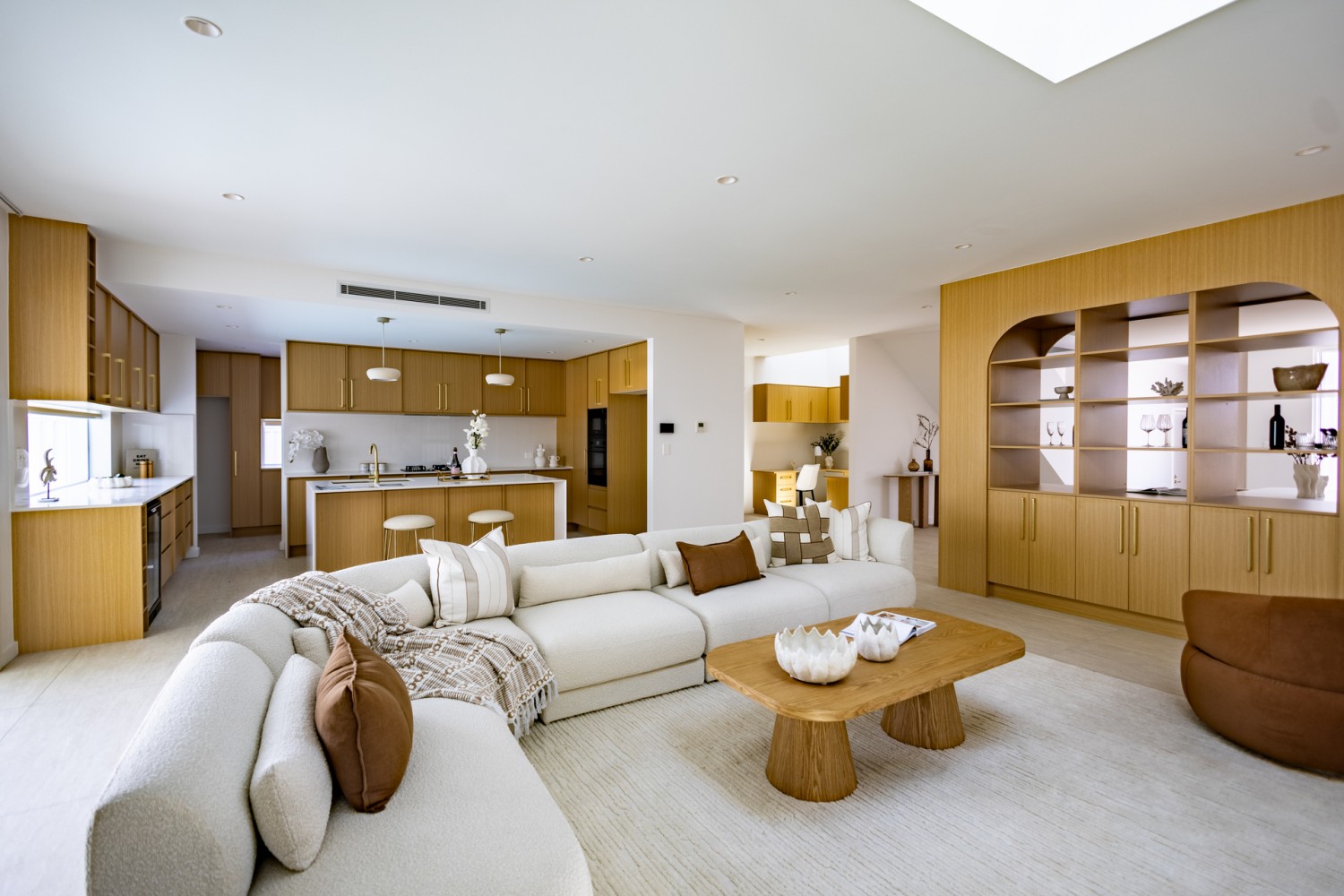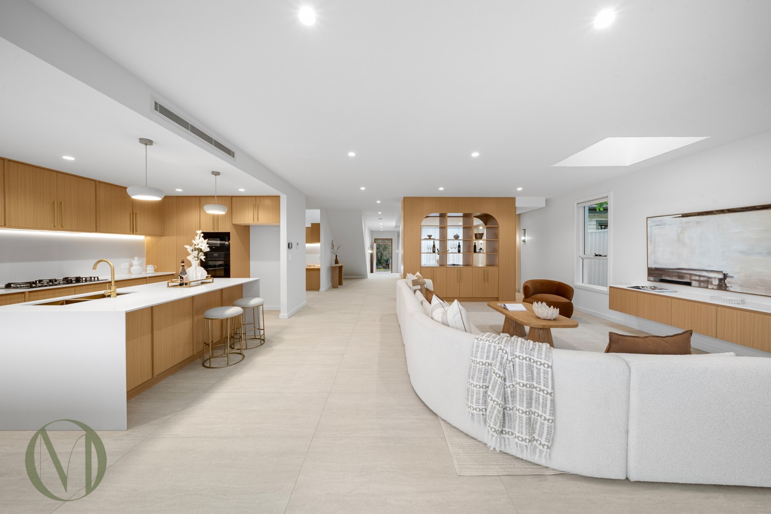 - Designer kitchen with premium appliances, stone island bench, and large walk-in pantry