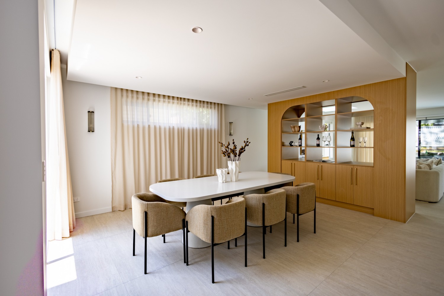 - Seamless flow to a covered patio and sparkling swimming pool, ideal for year-round entertaining