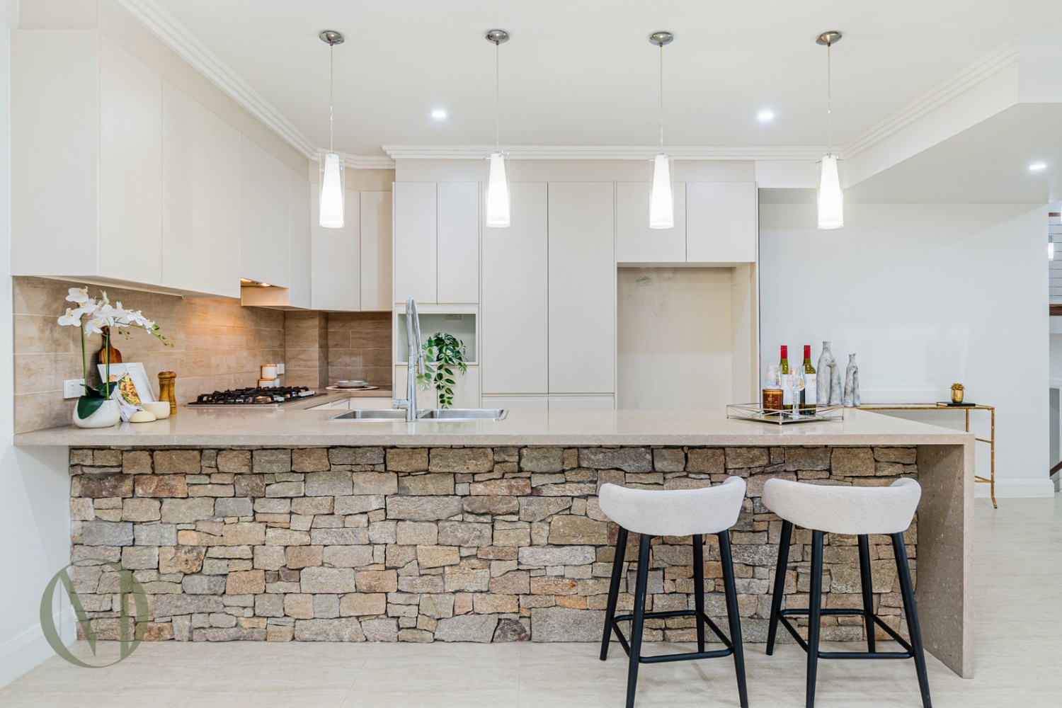 - Stone-featured kitchen with quality appliances: Westinghouse oven AND cooktop, Midea dishwasher