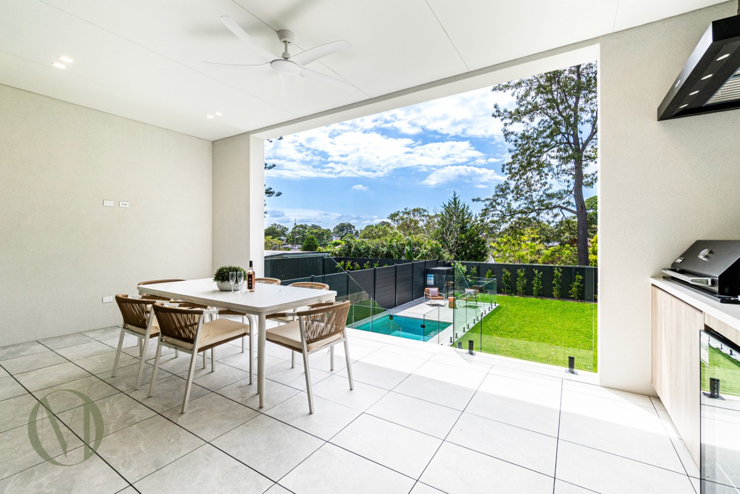 Covered alfresco entertaining with Sirius BBQ, Husky bar fridge, sink and integrated cabinetry