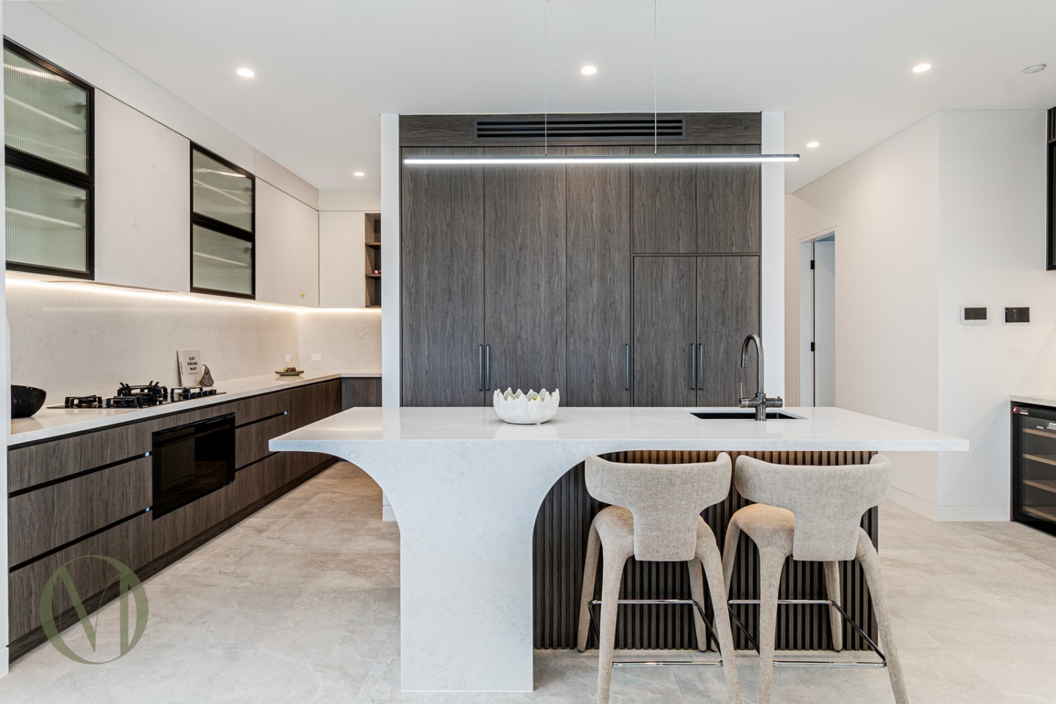 Premium kitchen with Fisher & Paykel gas cooktop and oven, integrated microwave and bespoke storage