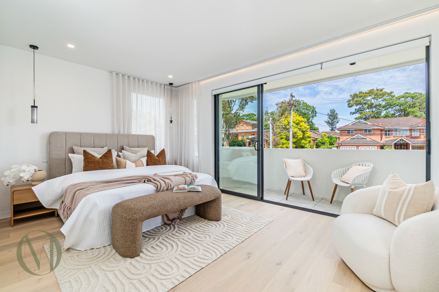 Grand master retreat with private balcony and walk-in robe flowing to a designer ensuite