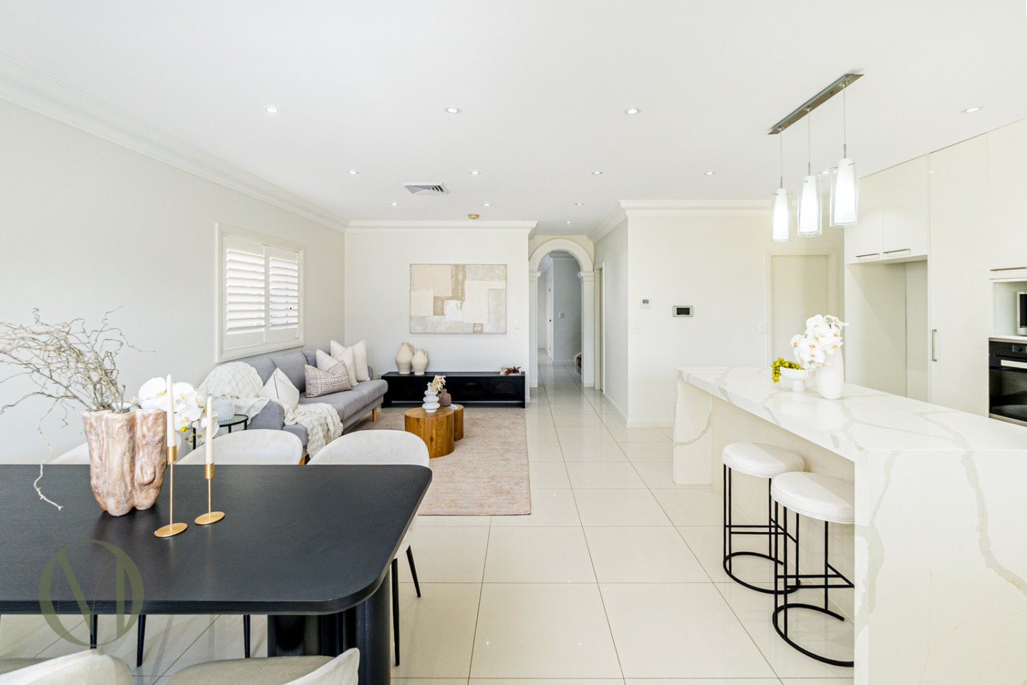 Nestled in a peaceful, family-oriented pocket, this beautifully presented brick duplex offers an exceptional lifestyle where modern comfort meets absolute convenience. The home is expertly designed to maximize space and natural light, featuring expansive windows and a thoughtful layout that caters perfectly to growing families or busy professionals. Every detail has been curated to create a bright, inviting atmosphere, offering a seamless blend of style and functionality in a location you'll love to call home. The ground floor serves as the vibrant heart of the home, where expansive living and dining zones are tied together by sleek, easy-care tiling.