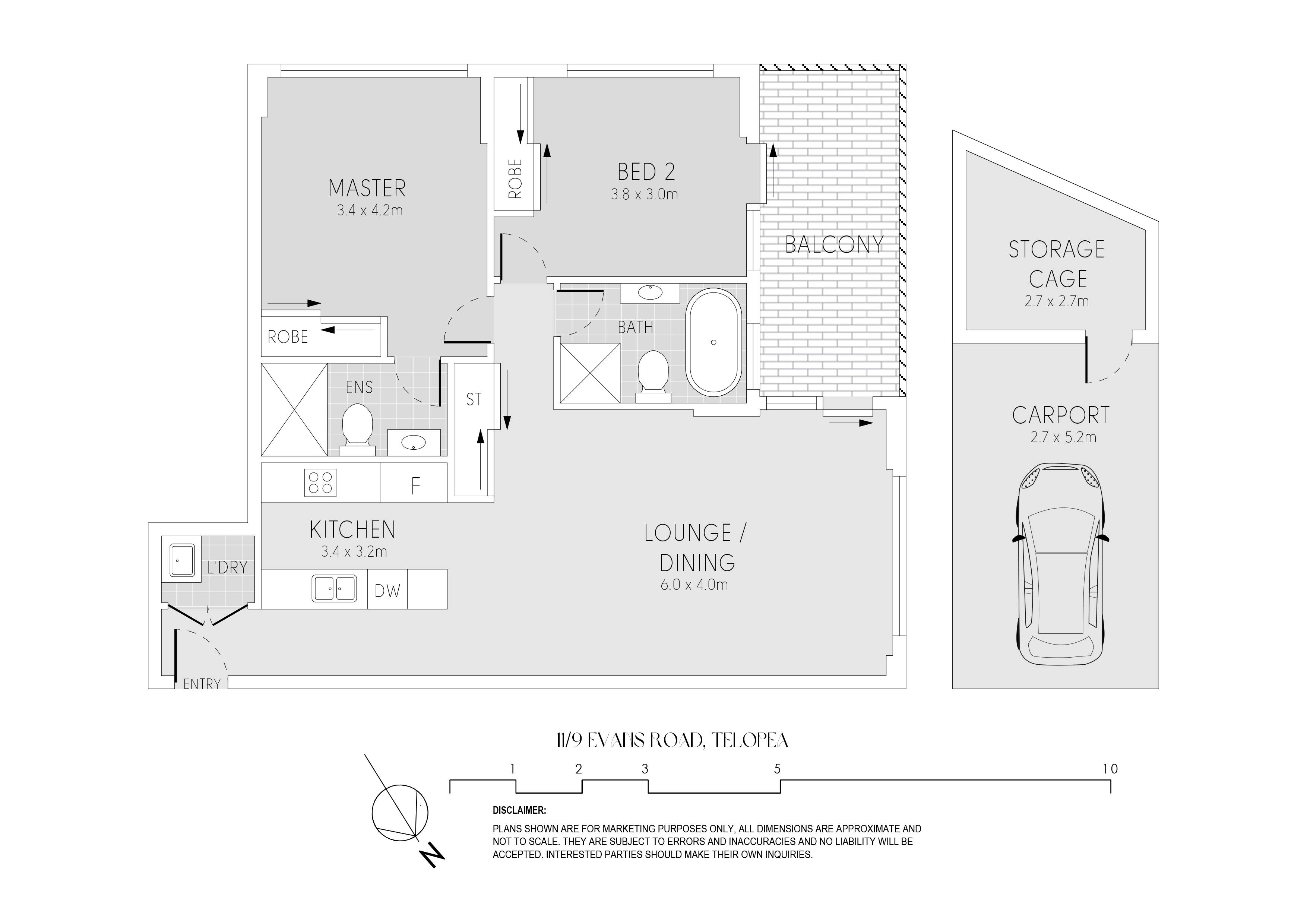 - Two generous sized bedrooms with built-in wardrobes, master bedroom with en-suite and second bedroom having access to balcony