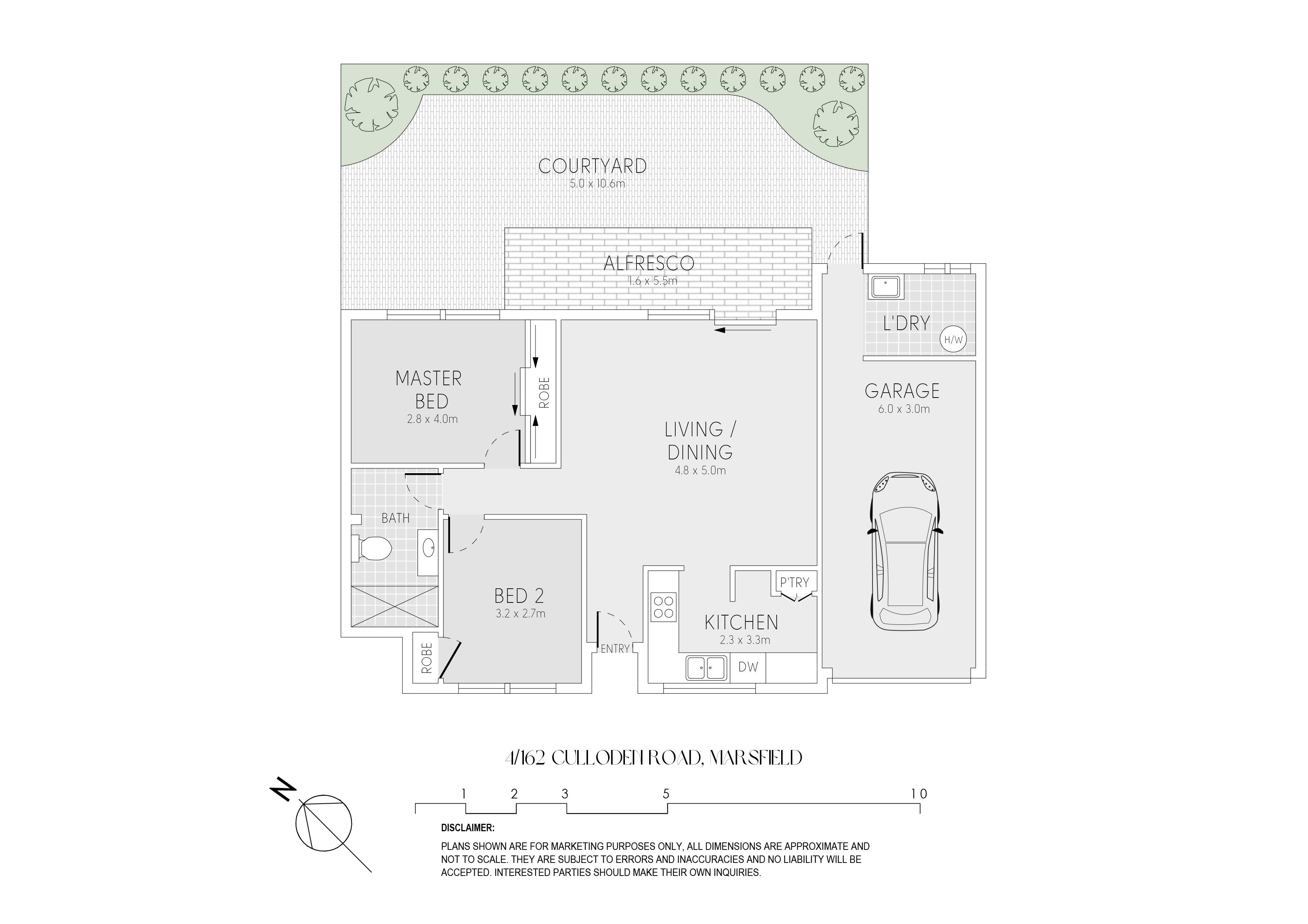 - Single lock up garage with access to private laundry and courtyard
