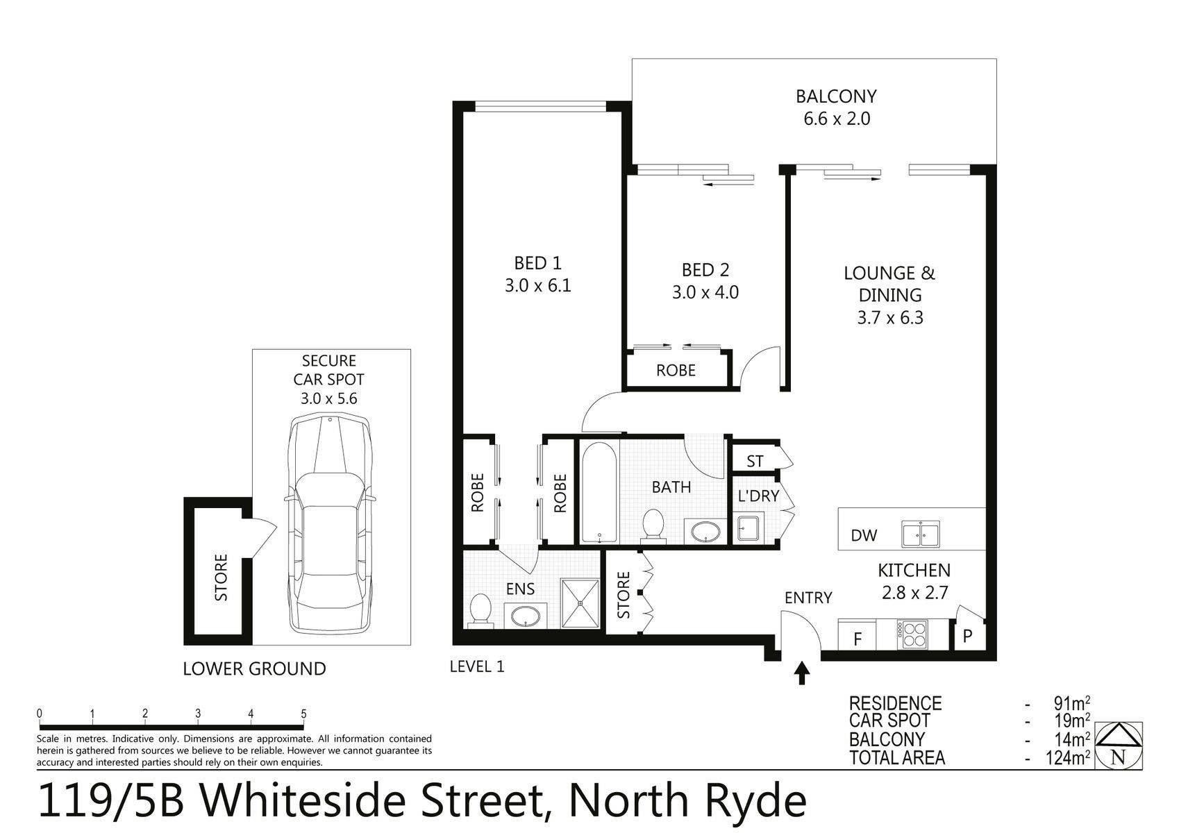 - Total size: 124sqm (91sqm internal, 14sqm balcony, 19sqm car space)