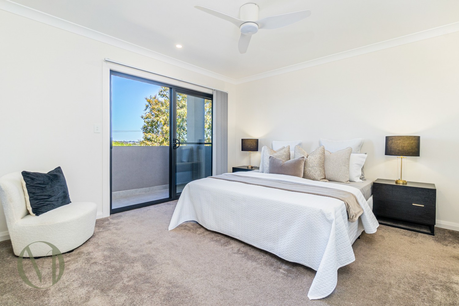 - Master suite with walk-in robe, ensuite, and private balcony with district views