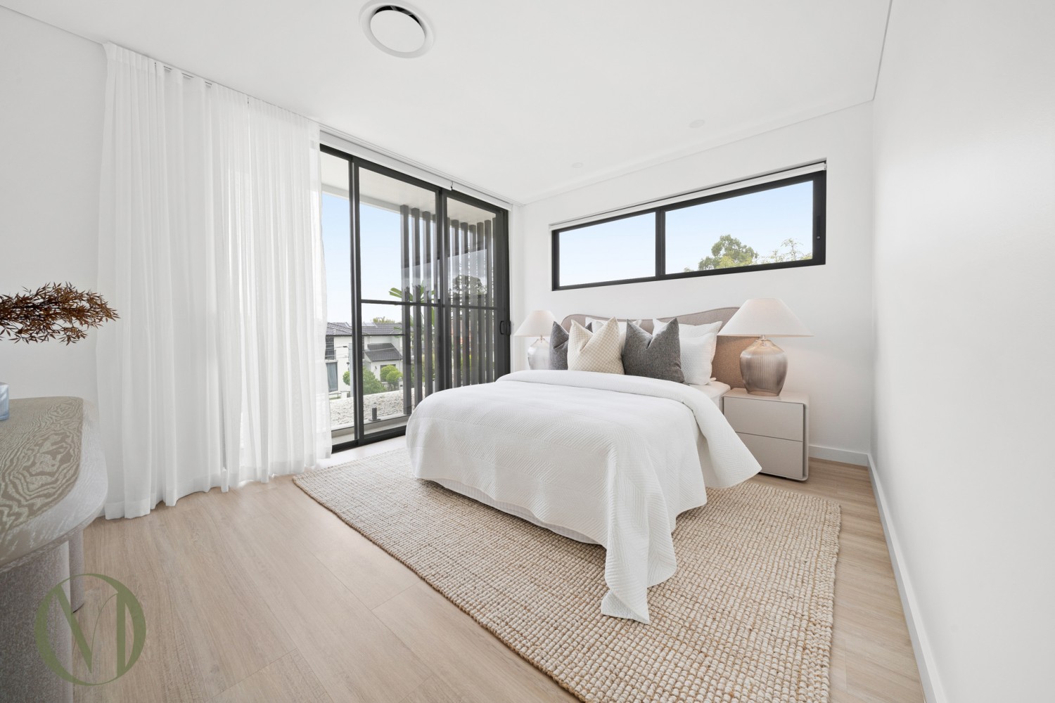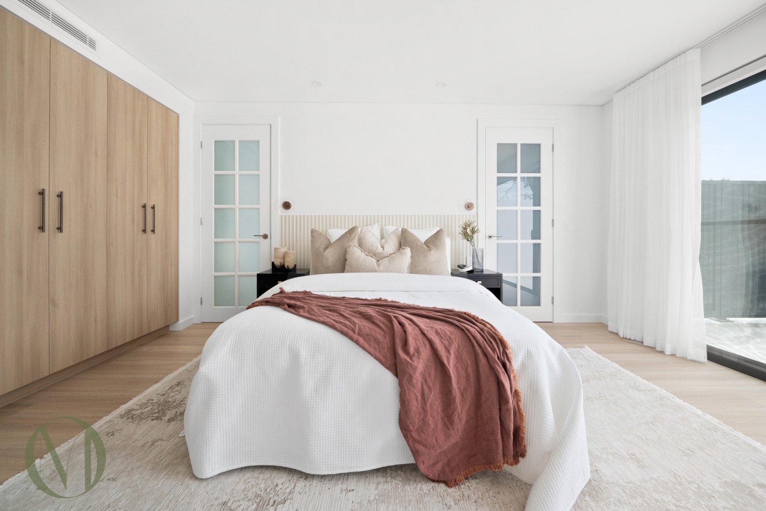 - Grand master retreat with bespoke joinery, feature bedhead wall, custom lighting and oversized balcony