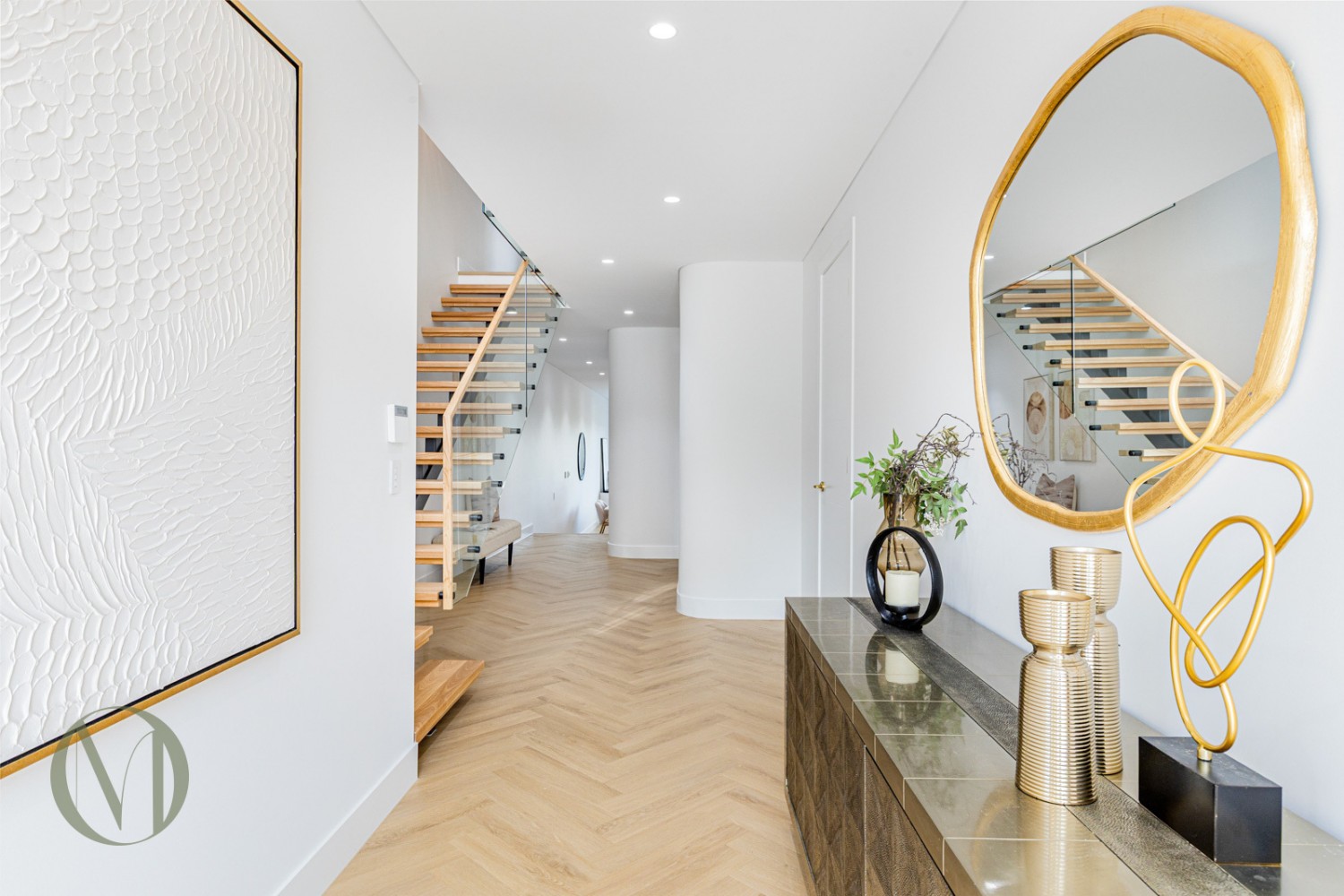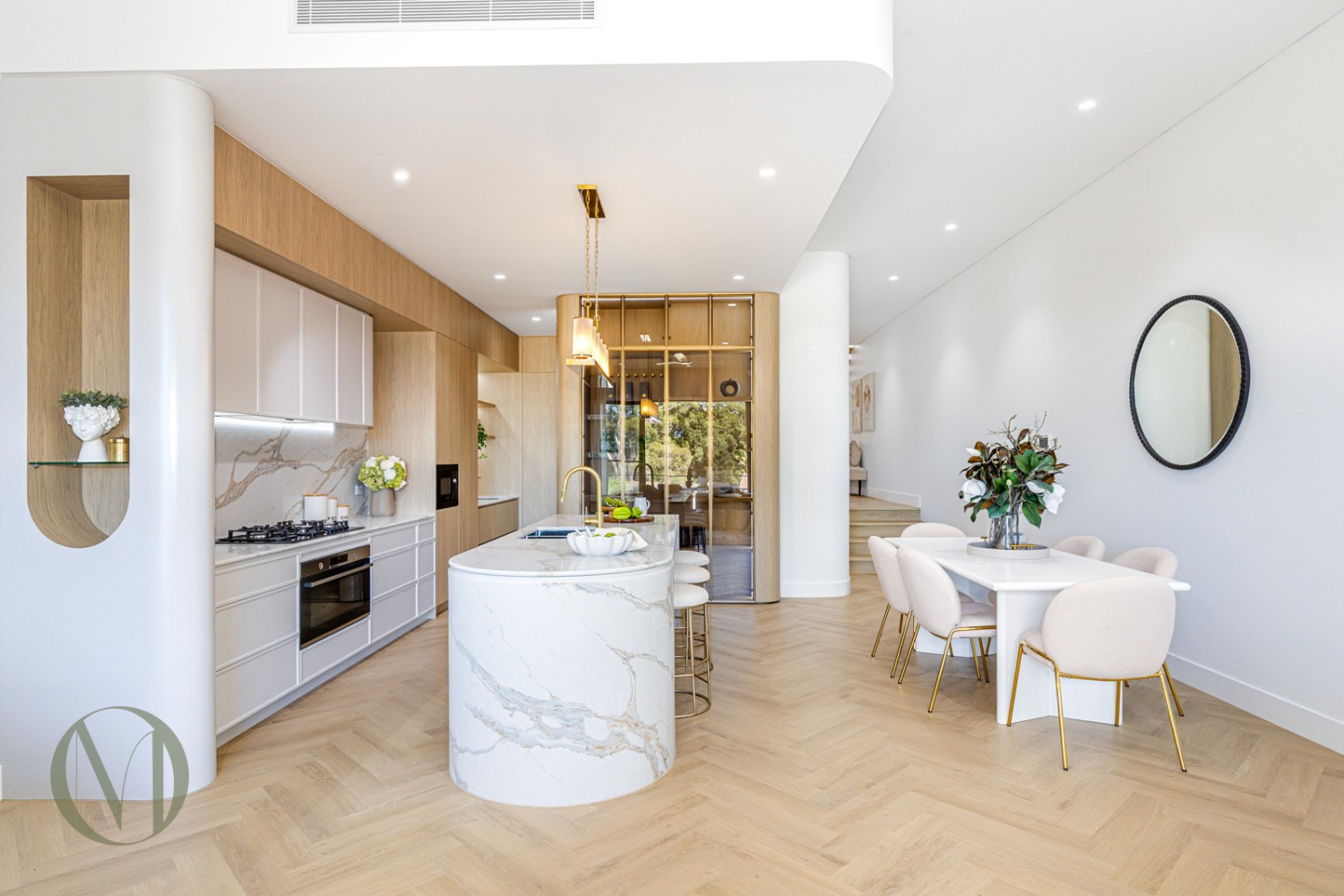Set within one of Ryde's most tightly held and prestigious pockets, this brand new architectural duplex delivers a refined standard of modern luxury. Showcasing sweeping district outlooks and glimpses of the city skyline, the home is defined by its striking curved architectural elements, herringbone timber flooring, and a cohesive palette of high end designer finishes. From its commanding street presence through to its gallery style interiors, every detail has been carefully considered to create a home of distinction.